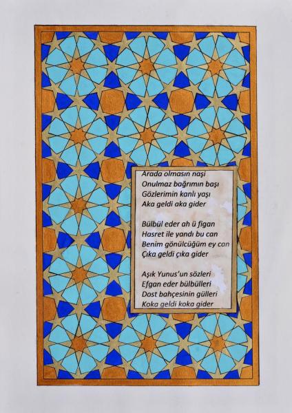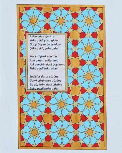 Tezhipli Minyatürlü Yunus Emre şiirleri kitabından Selçuklu desenli şiir
