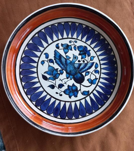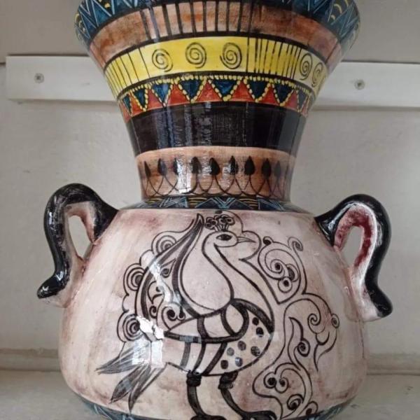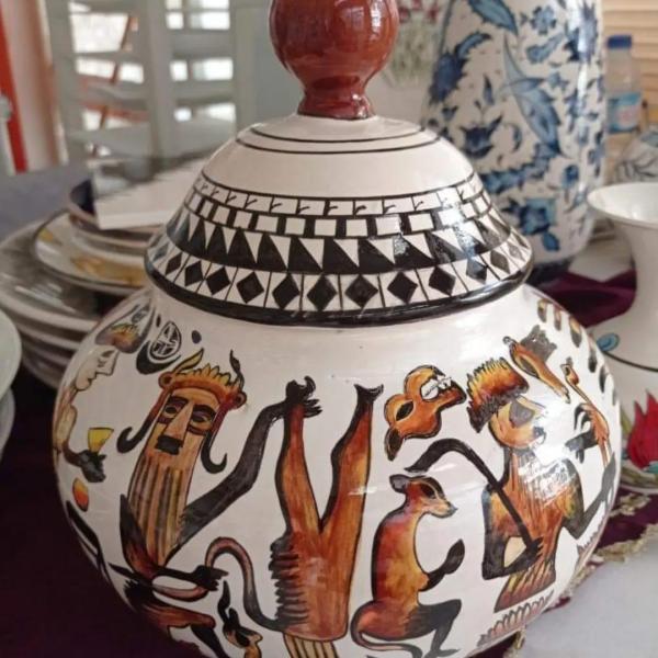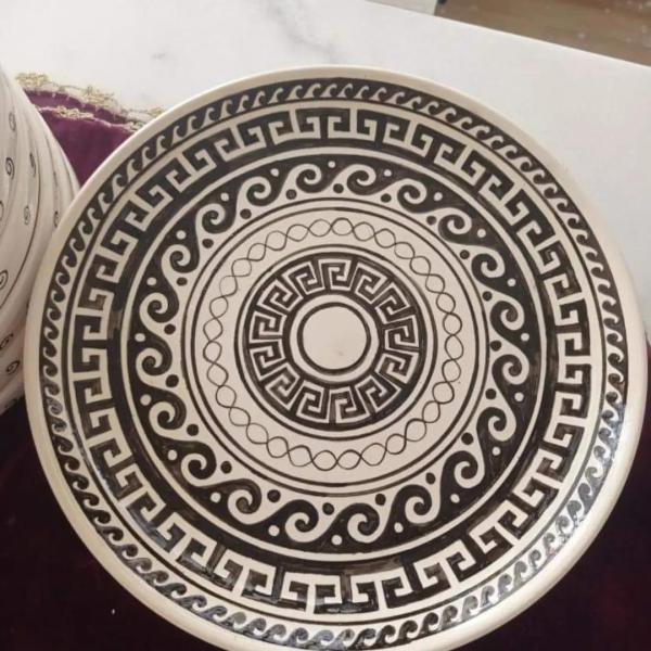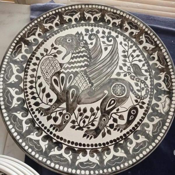 Sanatçı çini ve kâğıt rölyef çalışmaktadır.